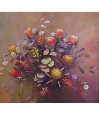 | "Banksias and Gum Leaves" 75 x 80 cm |