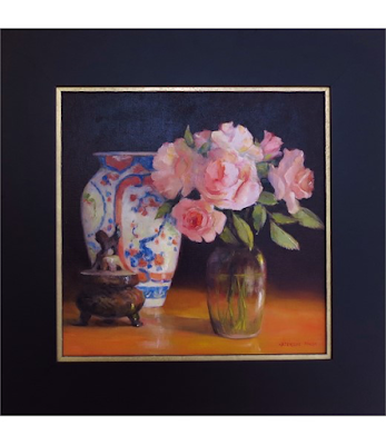 | "Chinese Ribbon Vase with Roses" 58 x 68 cm |