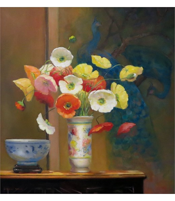 | "Poppies in Gouda Vase" 89 x 83 cm |