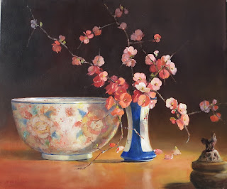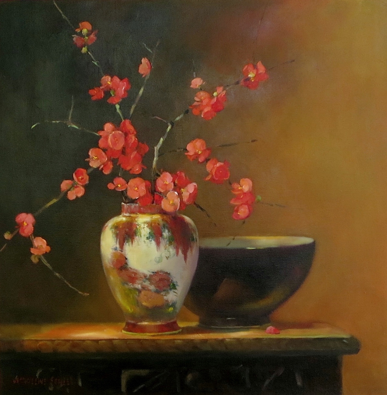 | "Japonica study with Satsuma vase" 46 x 56 cm Sold |